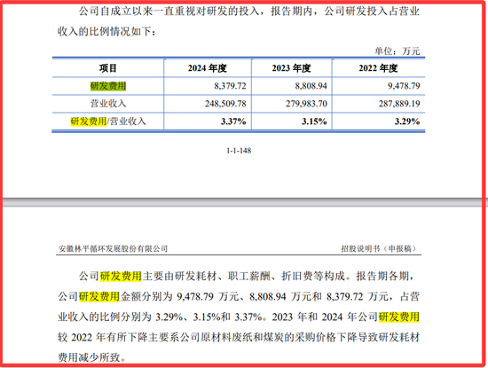 2024年研发费用8379.72万元,占营收3.37%,低于行业平均的3.44%,与龙头晨鸣纸业10.80亿的研发投入相比,更是天壤之别。